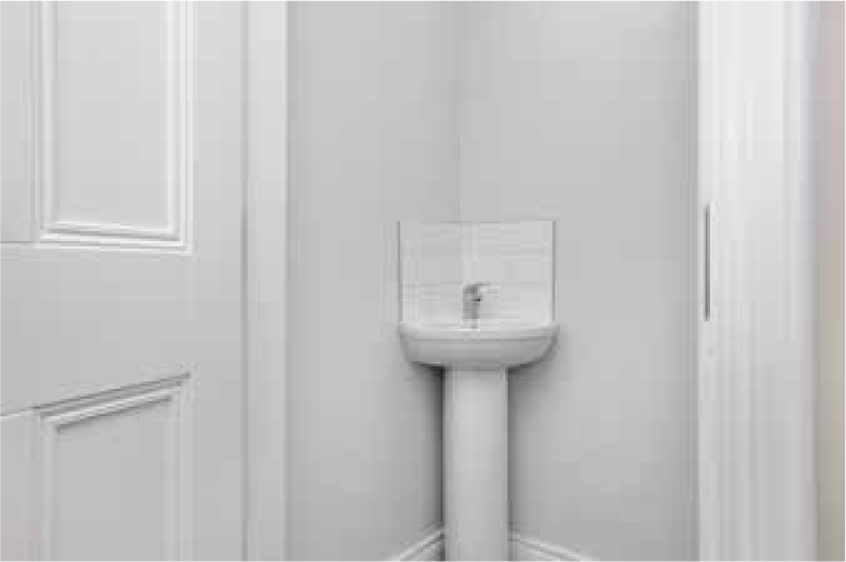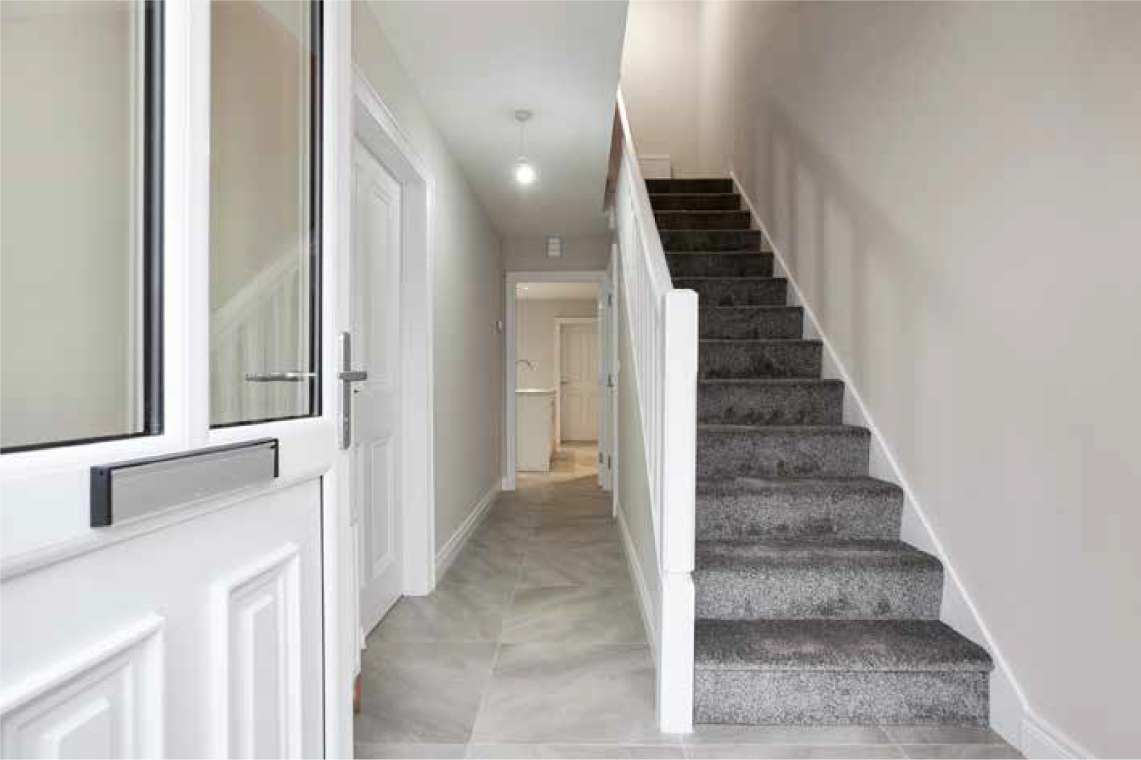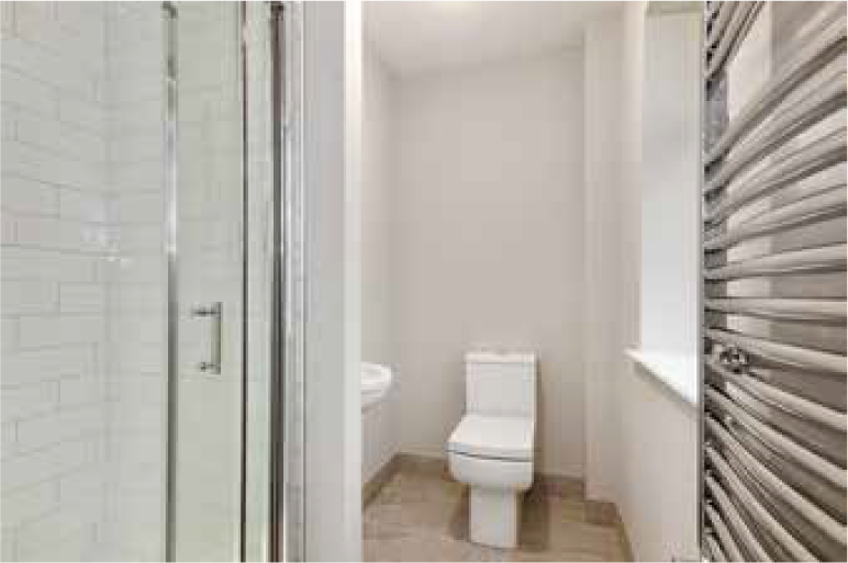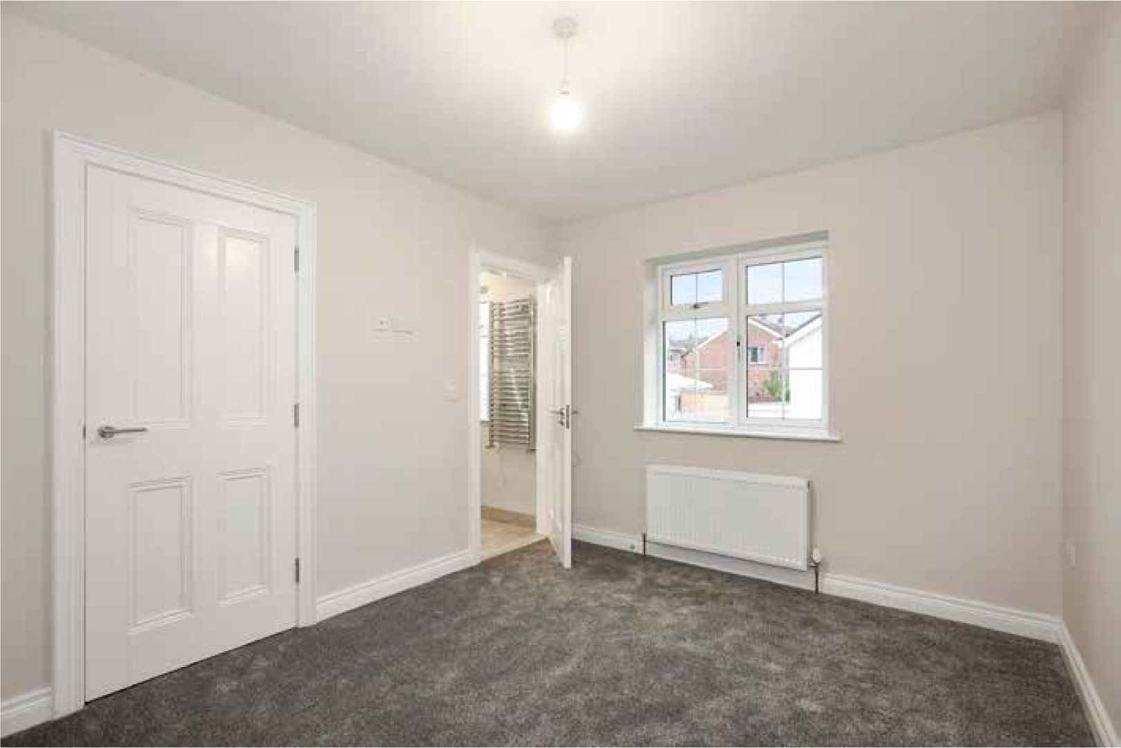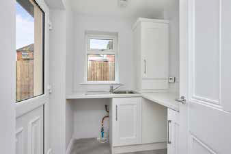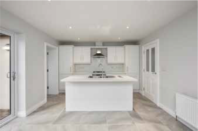 Inside, the property is designed for comfort and efficiency, with high levels of insulation and a gas-fired heating system supplying radiators throughout. Electrical provision is generous. Joinery includes four-panel doors with satin-chrome ironmongery, 75 mm timber architraves (hockey-stick profile) and 125 mm skirting, all fully decorated along with walls and ceilings for a clean, move-in-ready finish.